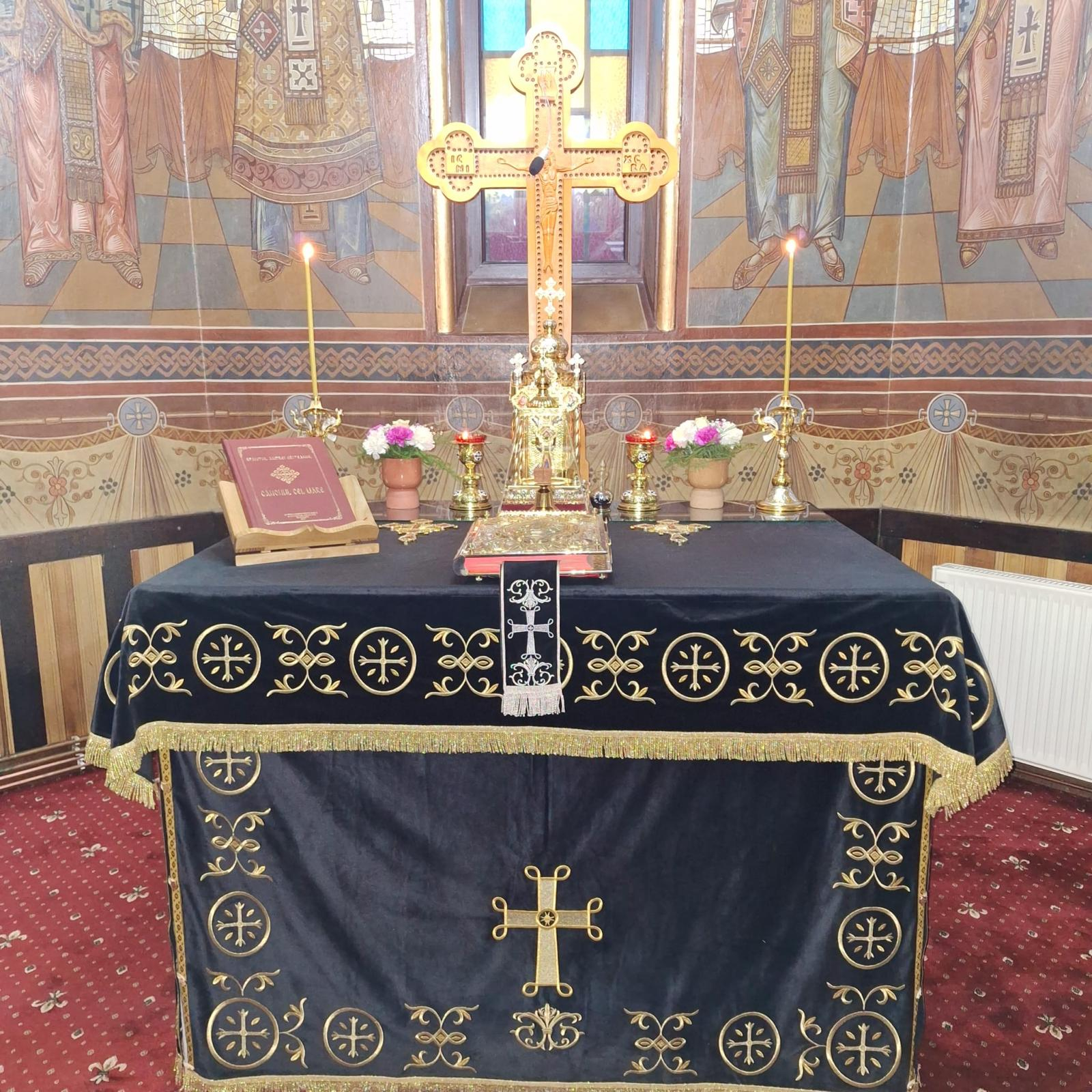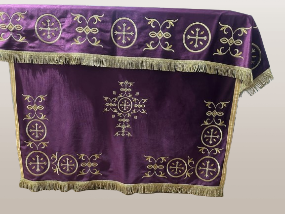 Aceste piese deosebite sunt destinate înfrumusețării altarului, fiind lucrate cu materiale de cea mai bună calitate și broderii executate cu fir de mătase și fir metalic pe catifea premium.