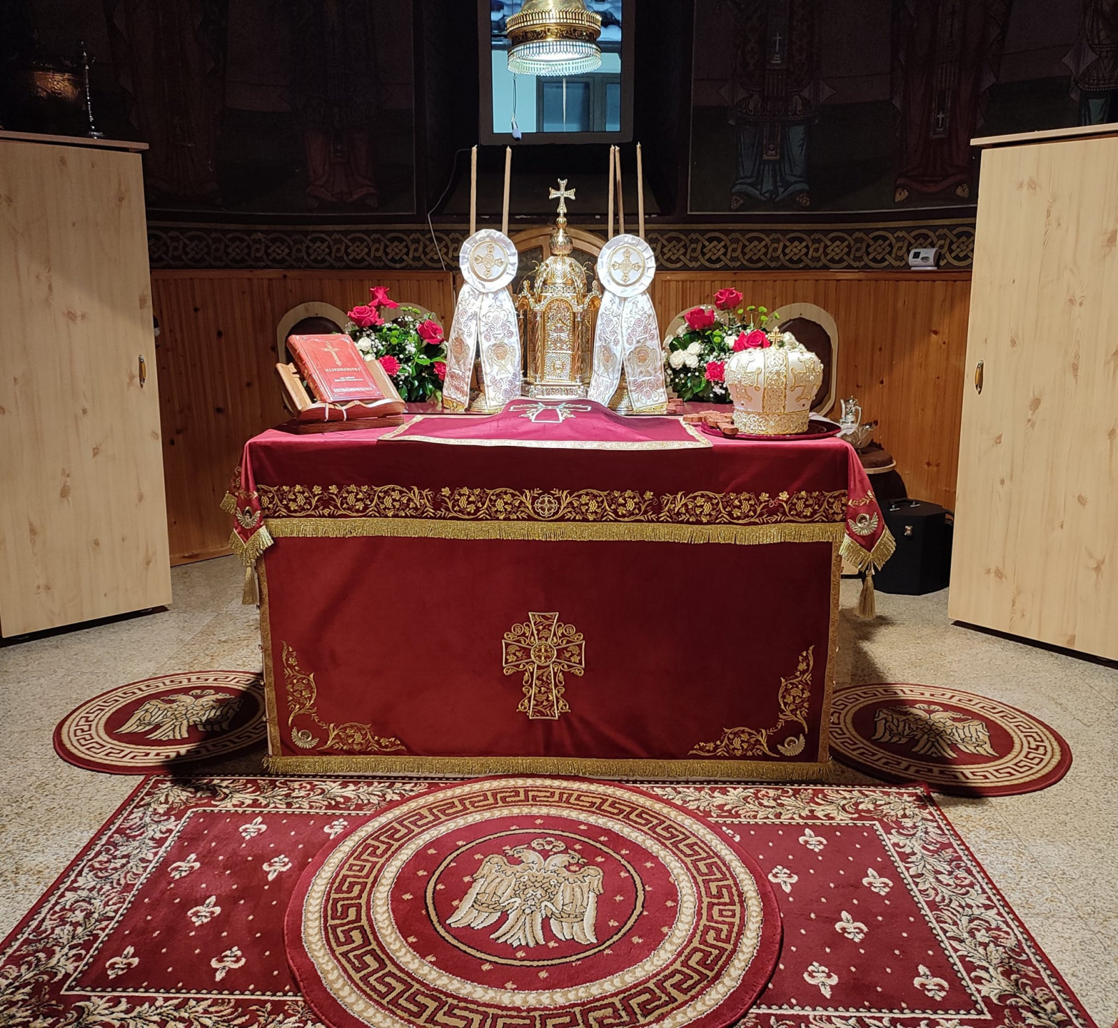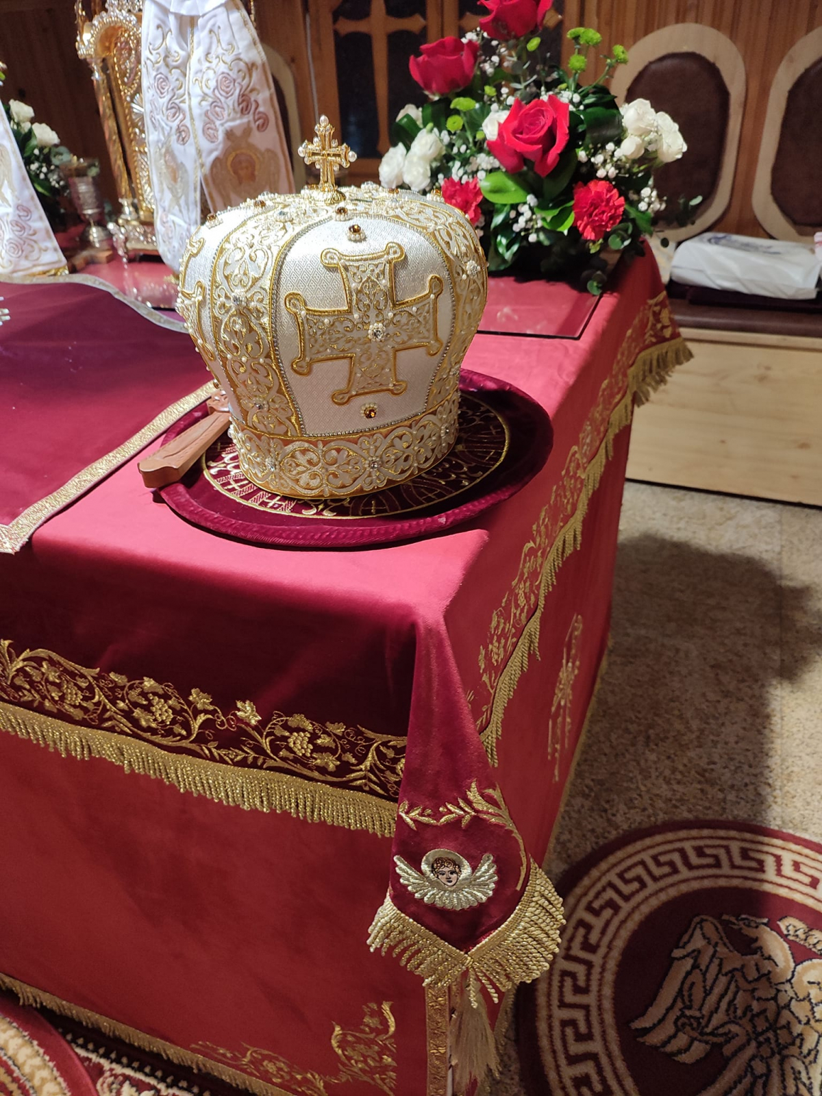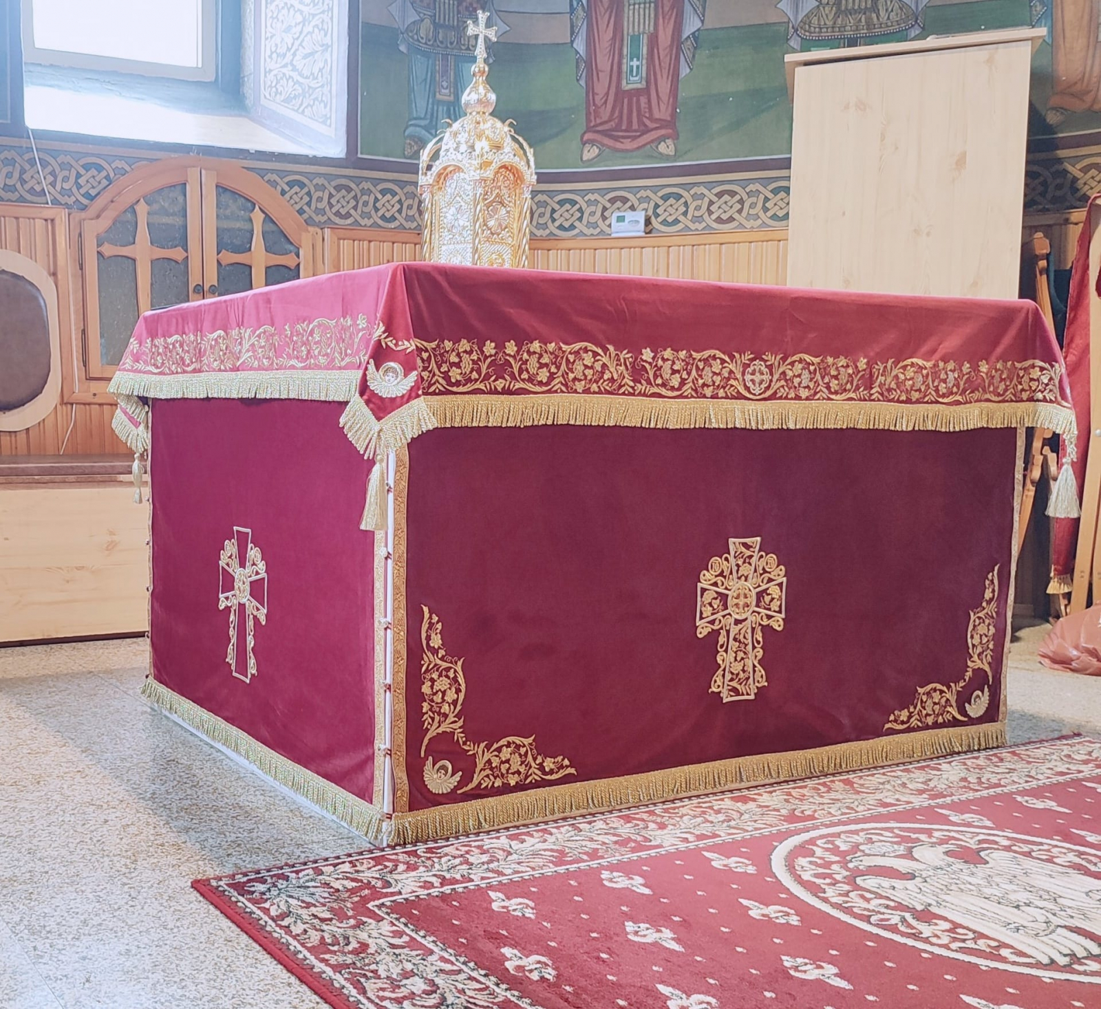 Acoperămitele pentru biserică, realizate din catifea brodată cu fir metalic.