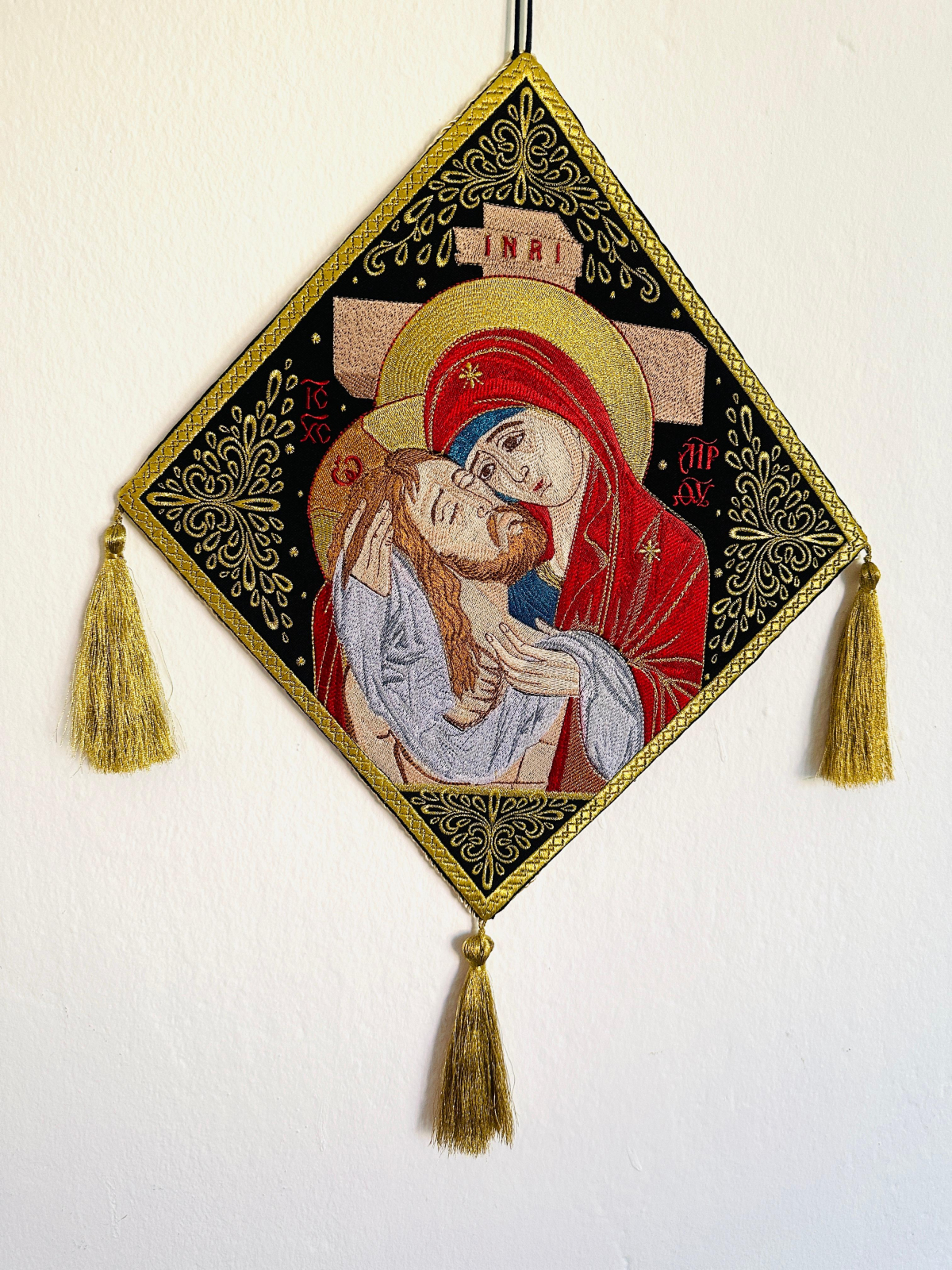 Bedernita brodata cu icoana Coborarea de pe Cruce