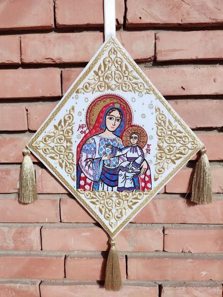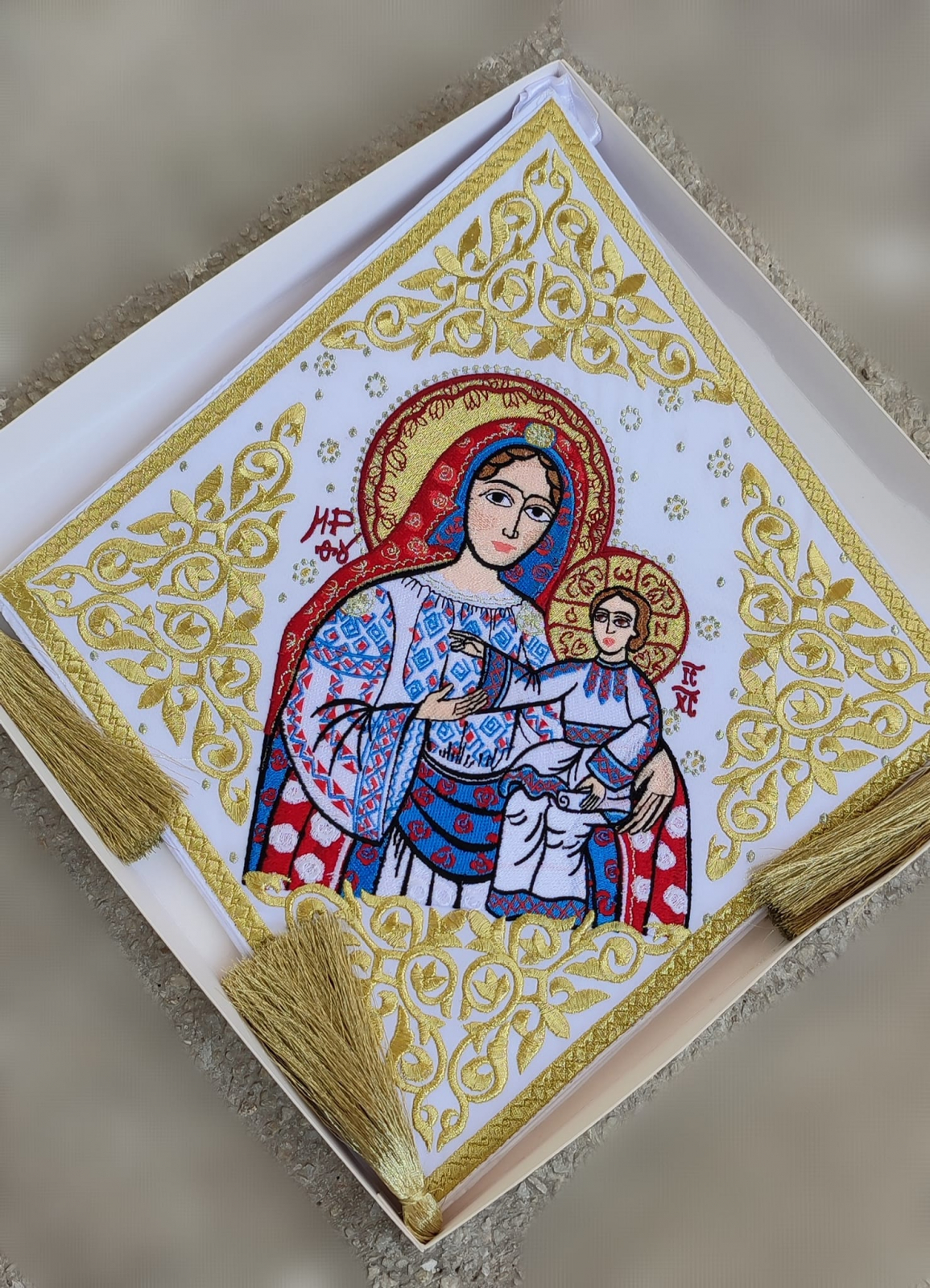 Bedernita brodata cu Maica Domnului si Pruncul.