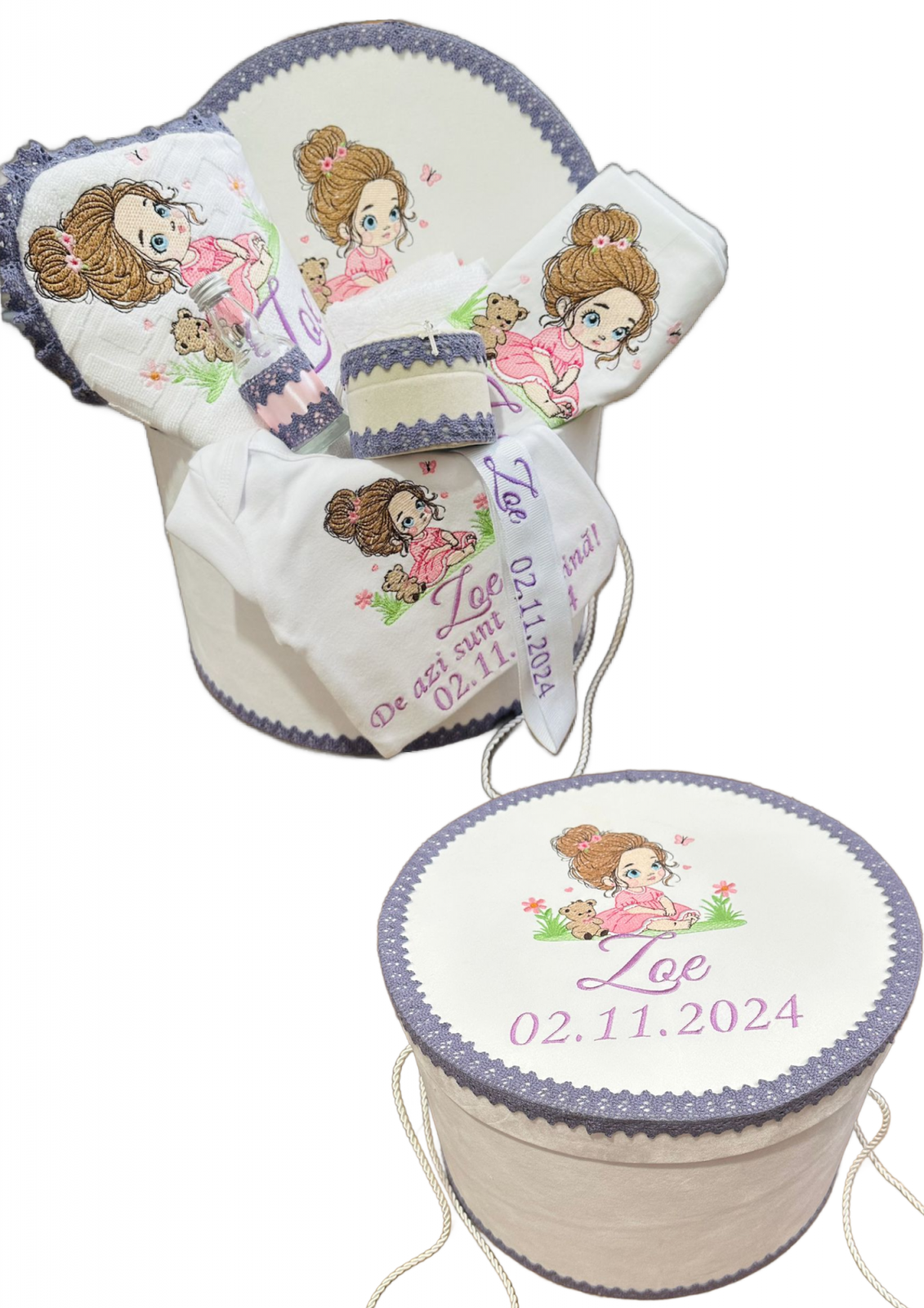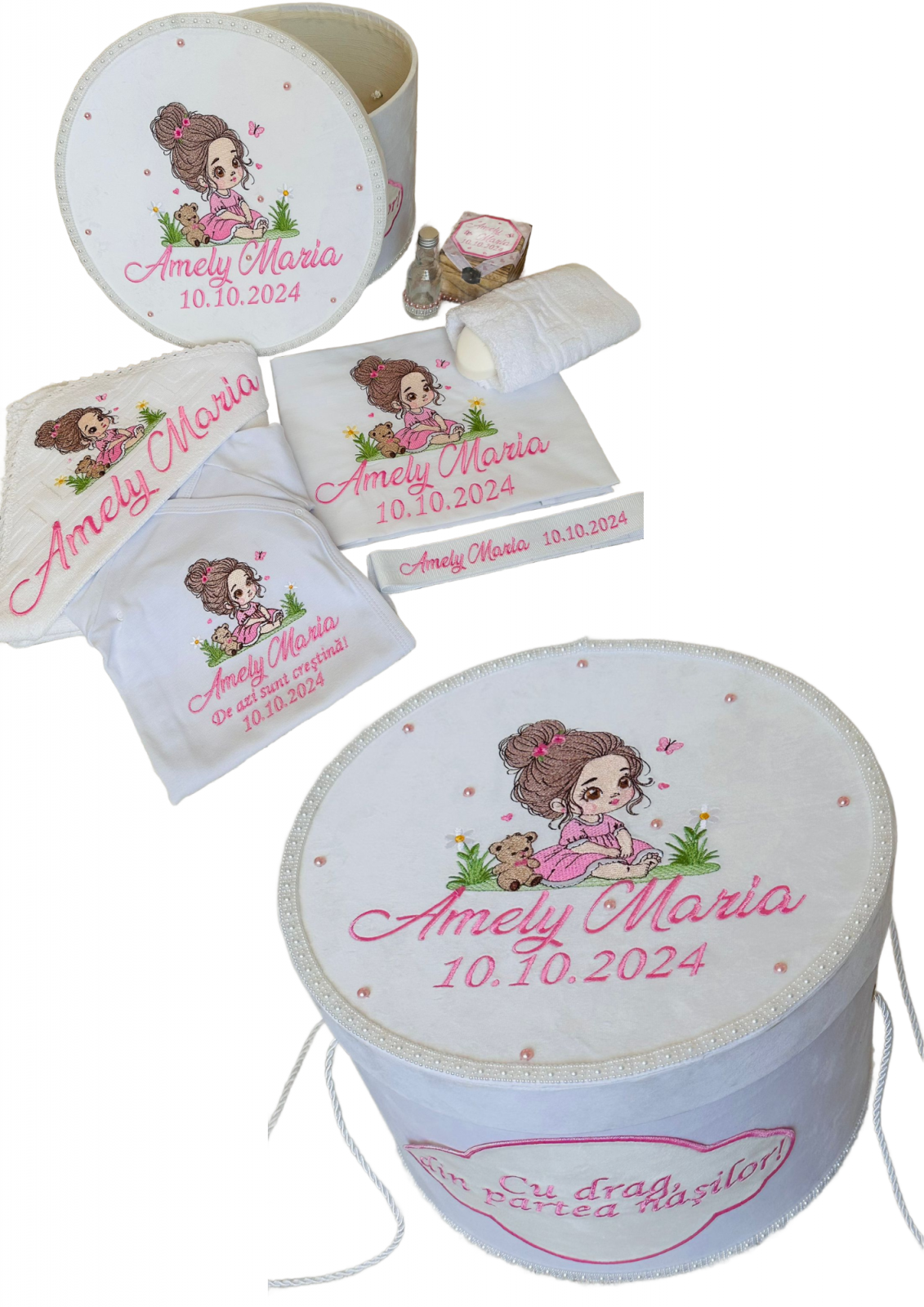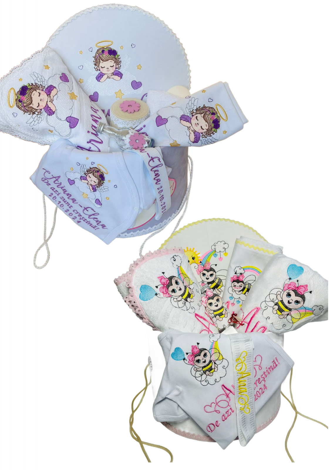 Descoperă colecția noastră de trusouri pentru botez și cadouri pentru copii, create cu dragoste și atenție la detalii. Fiecare model este personalizabil, astfel încât să se potrivească perfect cu tema dorită de tine.