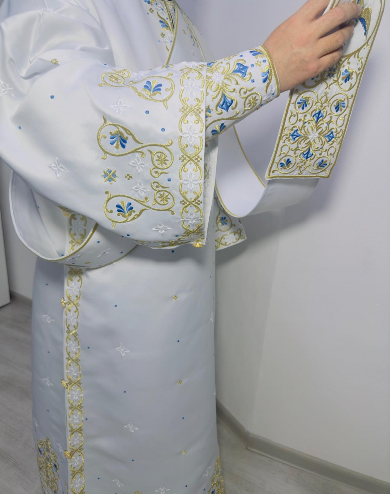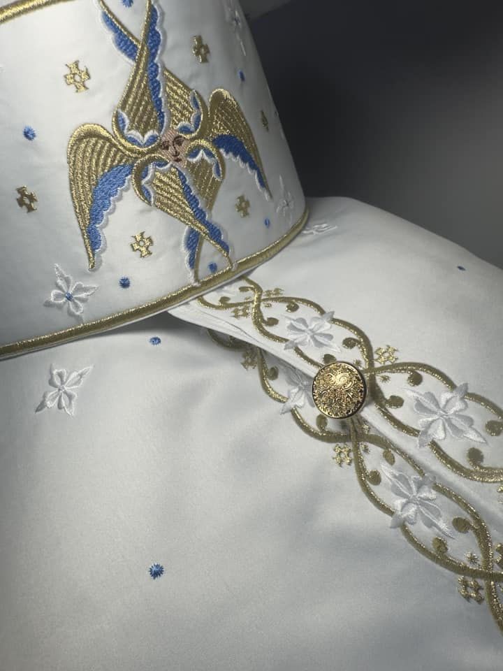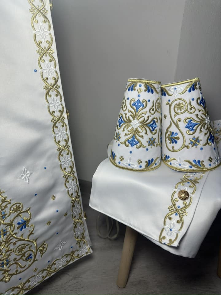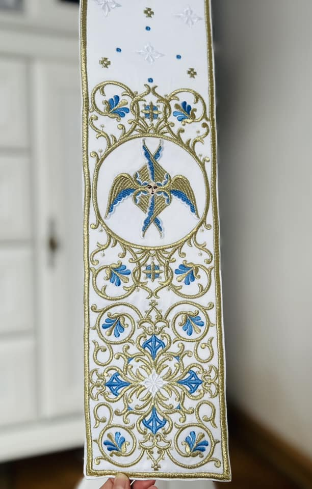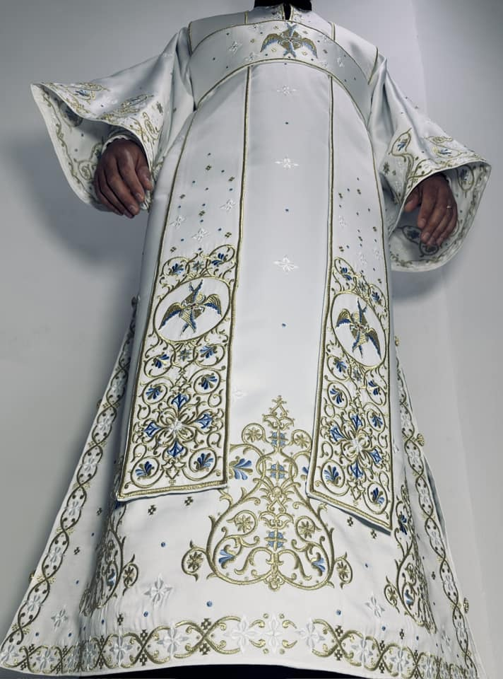 Vesmant diaconesc din tafta duchesse de inalta calitate brodat cu fir metalic si fir de matase.
